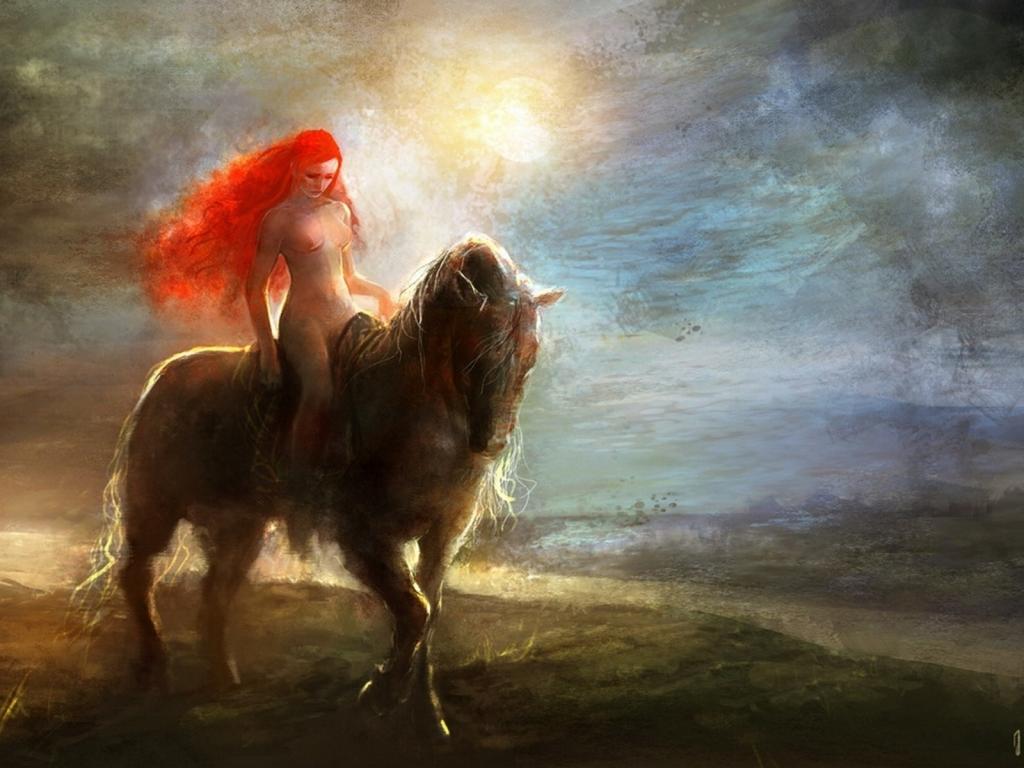 Рыжая на коне обои для рабочего стола, картинки, фото, 1024x768. | ||||||||||||||||