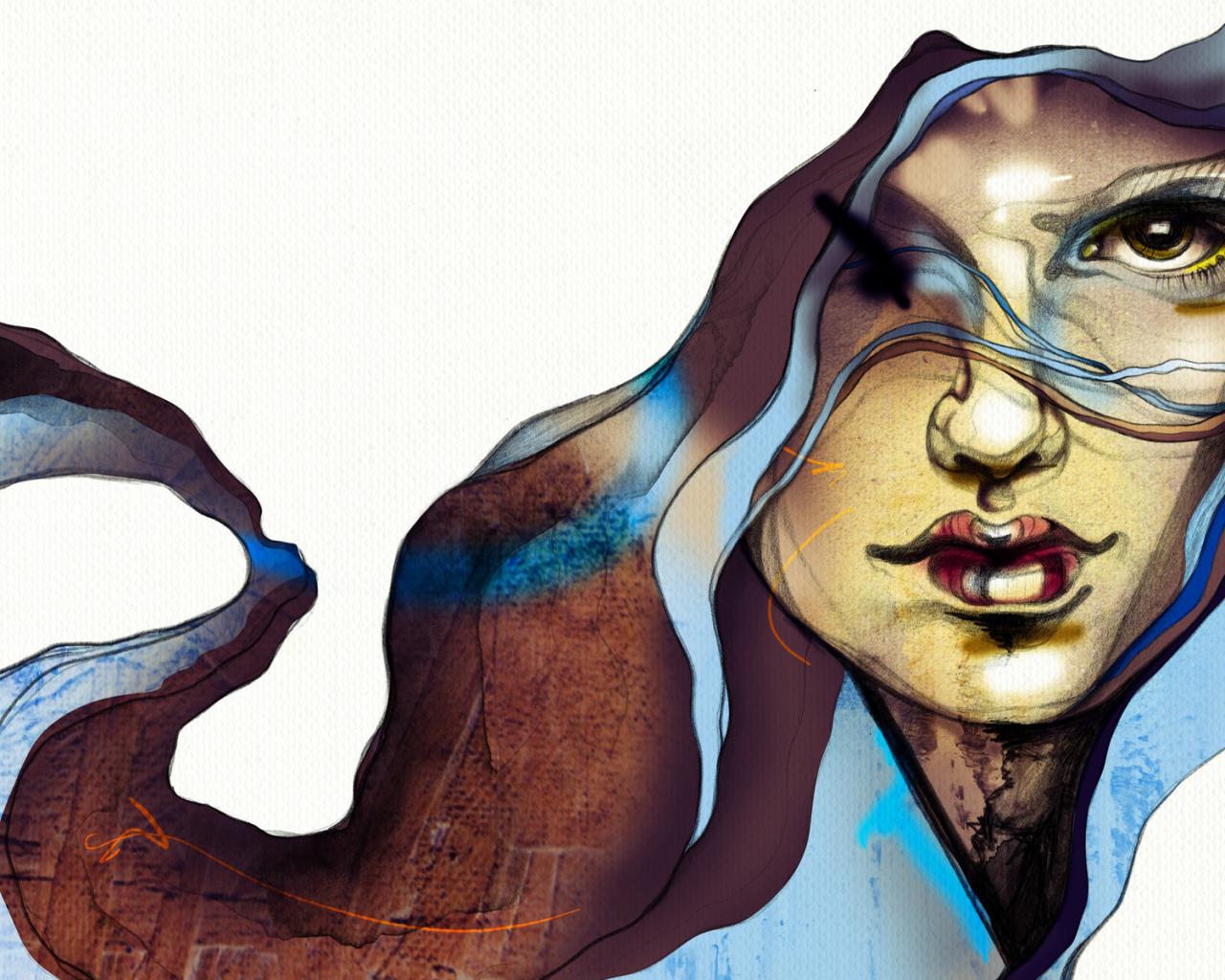 Графика, лицо, шлейф обои для рабочего стола, картинки, фото, 1280x1024. | ||||||||||||||||