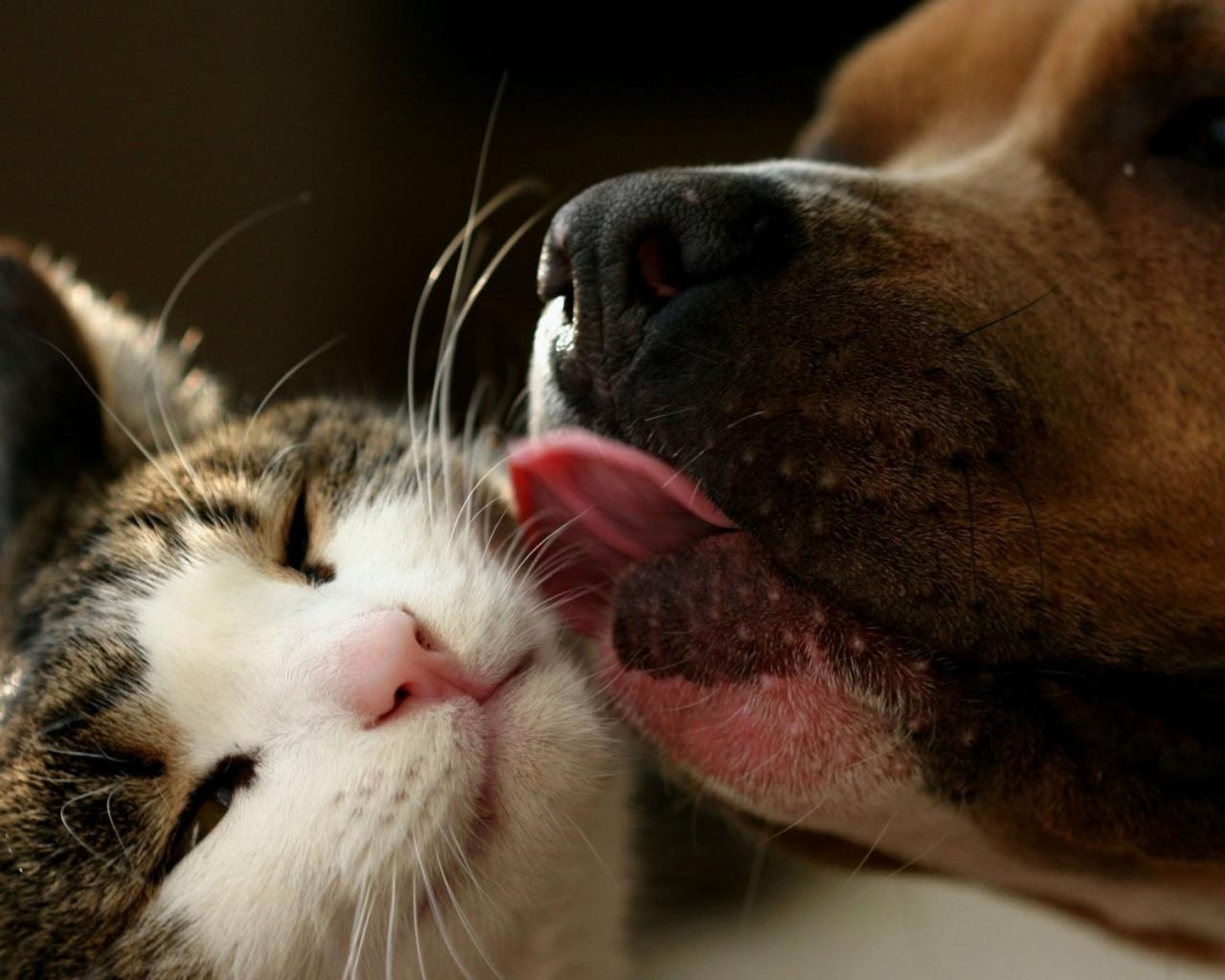 Поцелуй кошки и собаки обои для рабочего стола, картинки, фото, 1280x1024. | ||||||||||||||||
