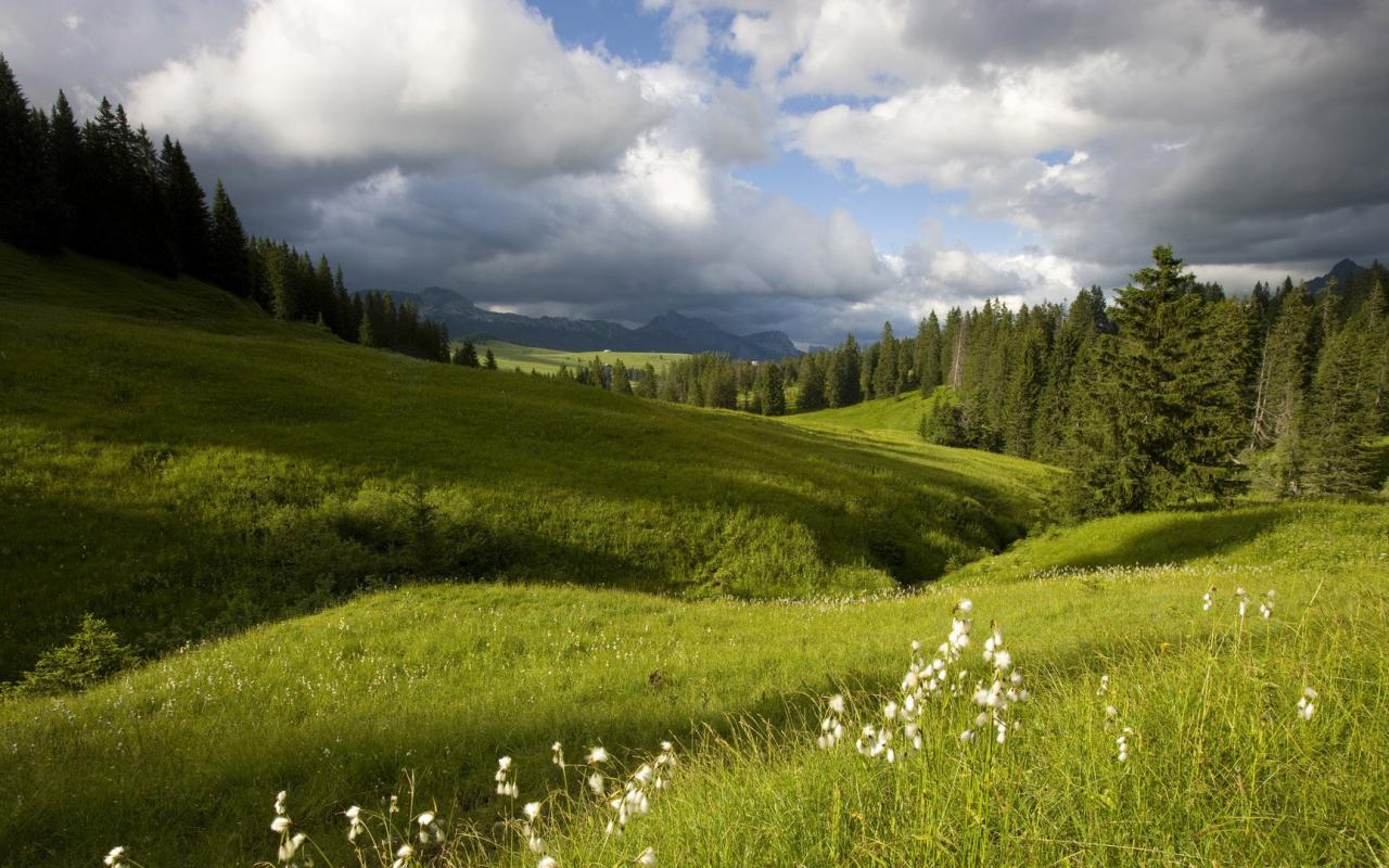 Красивые зеленые холмы с лесами обои для рабочего стола, картинки, фото, 1280x800. | ||||||||||||||||