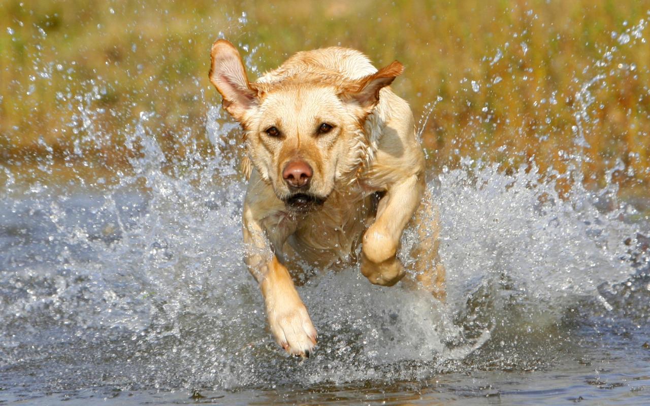 Голден ретривер мчится по воде обои для рабочего стола, картинки, фото, 1280x800. | ||||||||||||||||